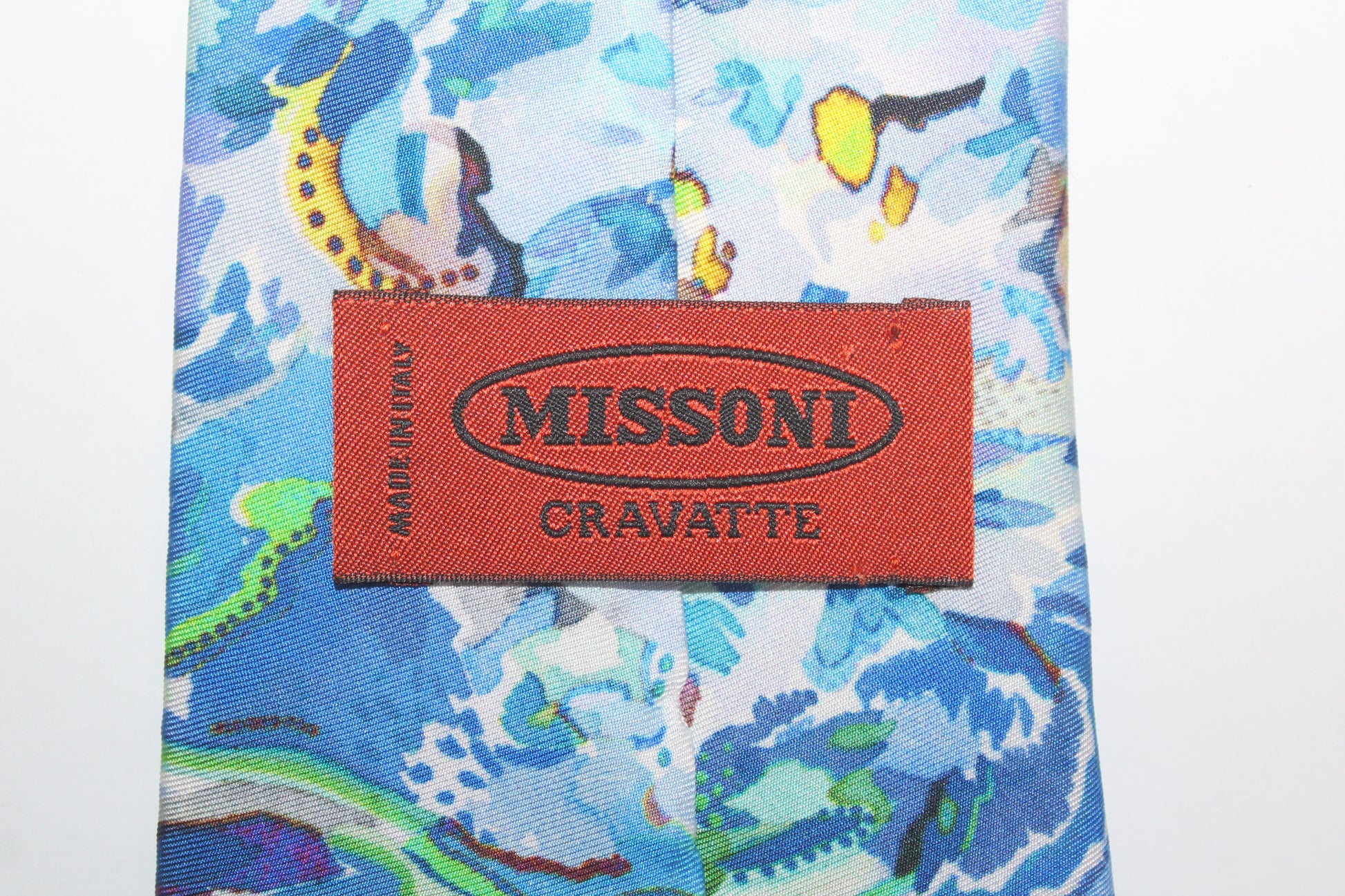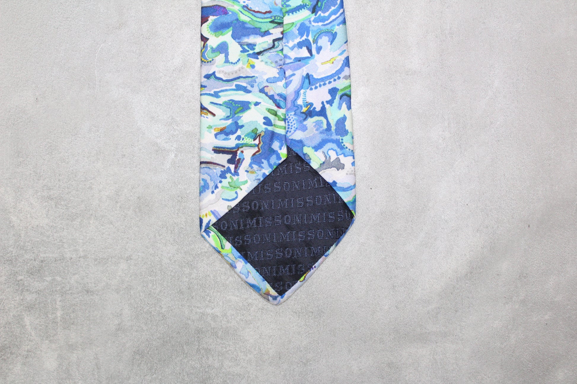 VINTAGE MISSONI BLUE ABSTRACT PATTERN SILK TIE