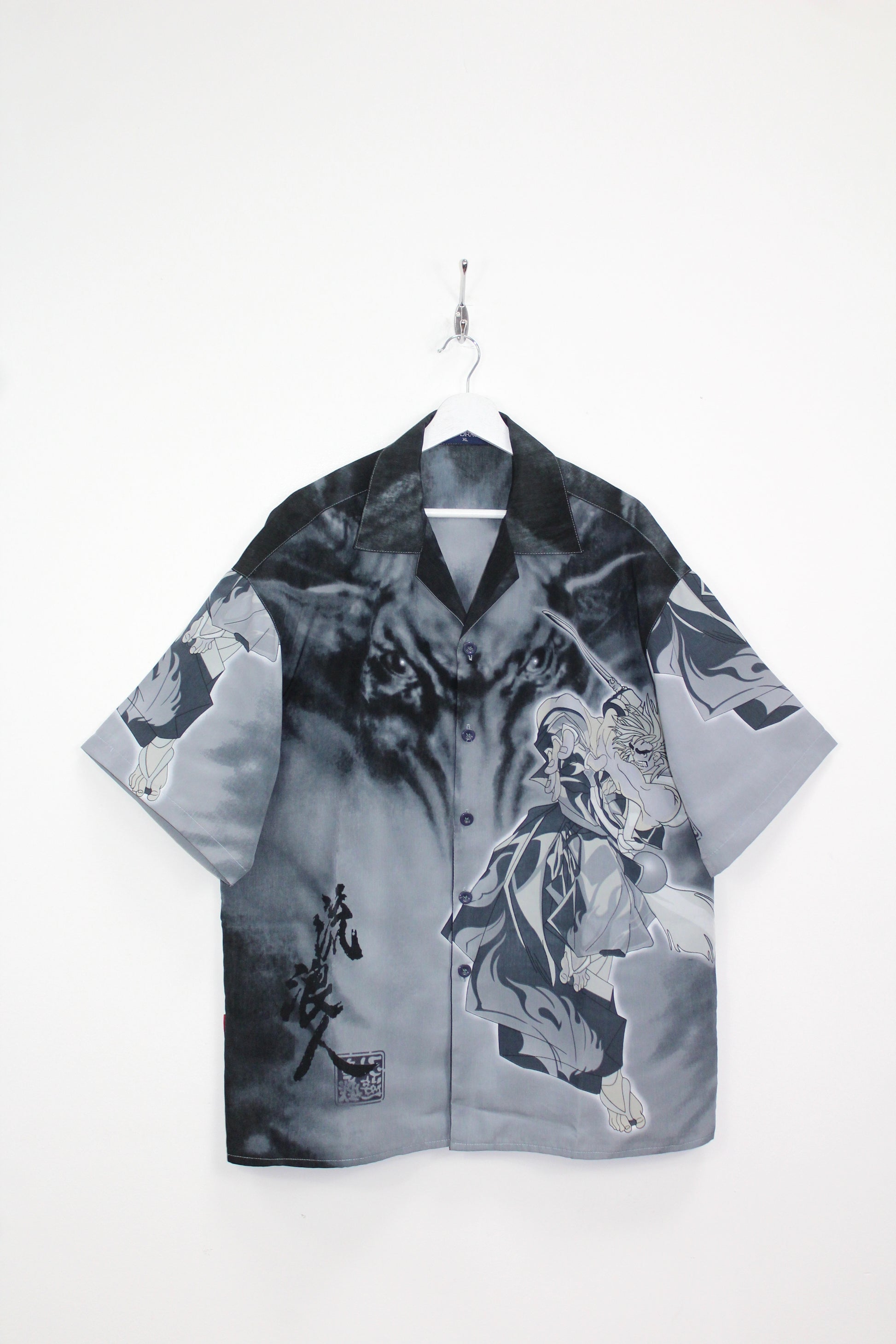VINTAGE SNOW DRAGON SHORT SLEEVE BUTTON DOWN SAMURAI SHIRT XL